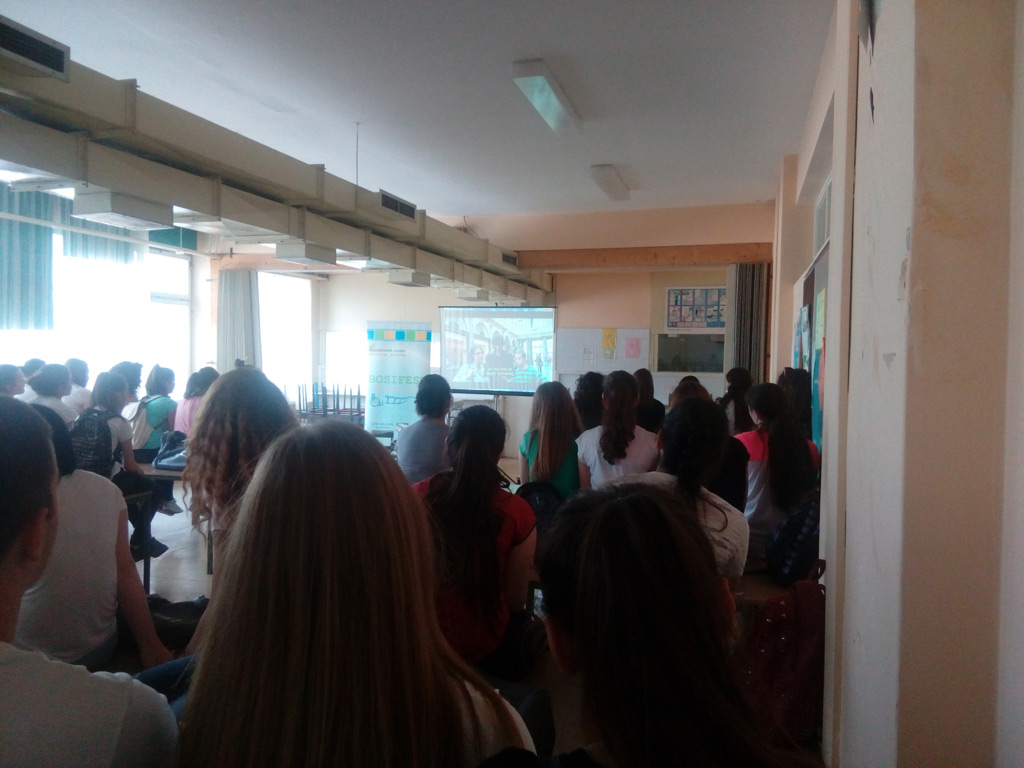 High school in Veliko Gradiste was visited by BOSIFEST representatives and their partners from The Belgrade College of Tourism on Friday, 26th of May. The lecture about people with disabilities and their problems in the society was held in front of the huge number of high schools students and their professors, as also the presentation of the upcoming International Film Festival For People With Disabilities, BOSIFEST 2017.